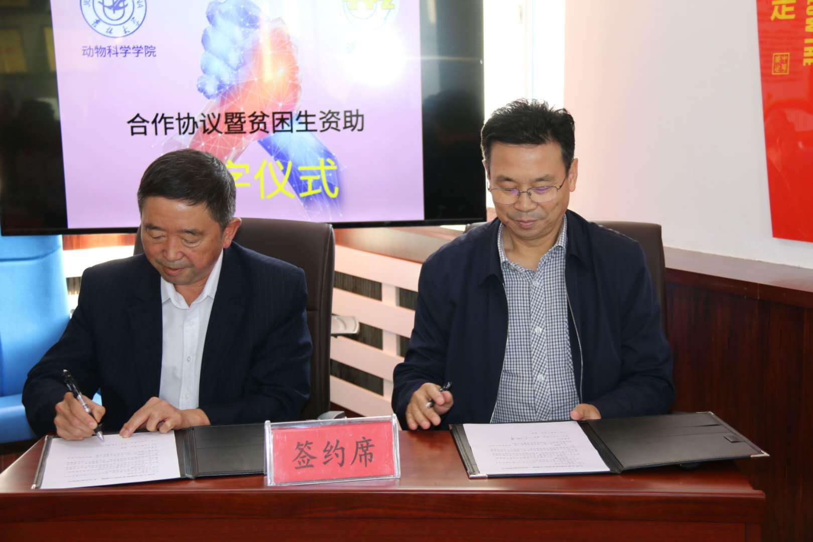 随后,通榆一中校长任国权与动物科学学院党委书记赵光军共同签订了合作框架协议,动物科学学院党委副书记曹伟光与三名受助学生分别签订了资助协议,张嘉保院长为受助学生发放了助学金。