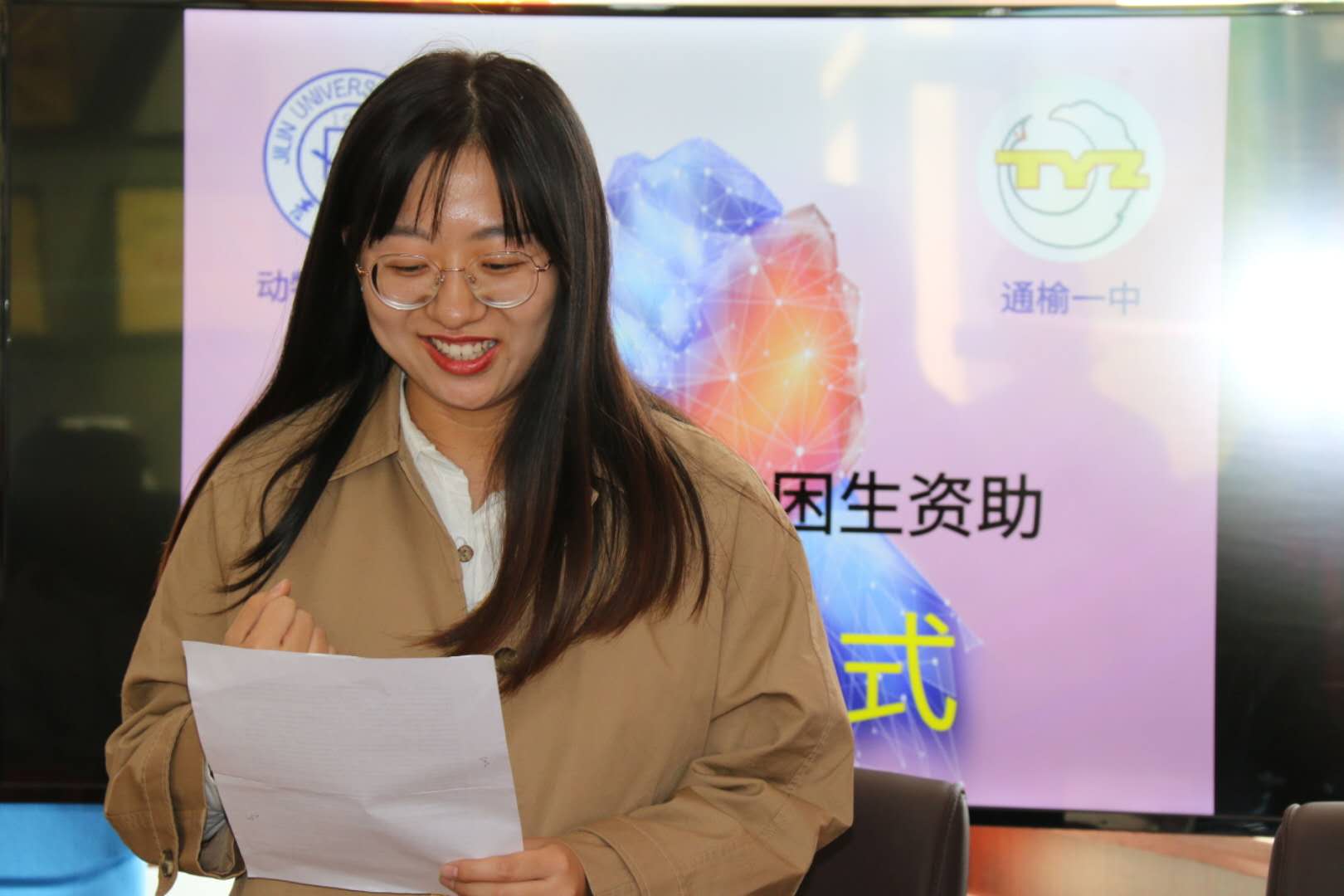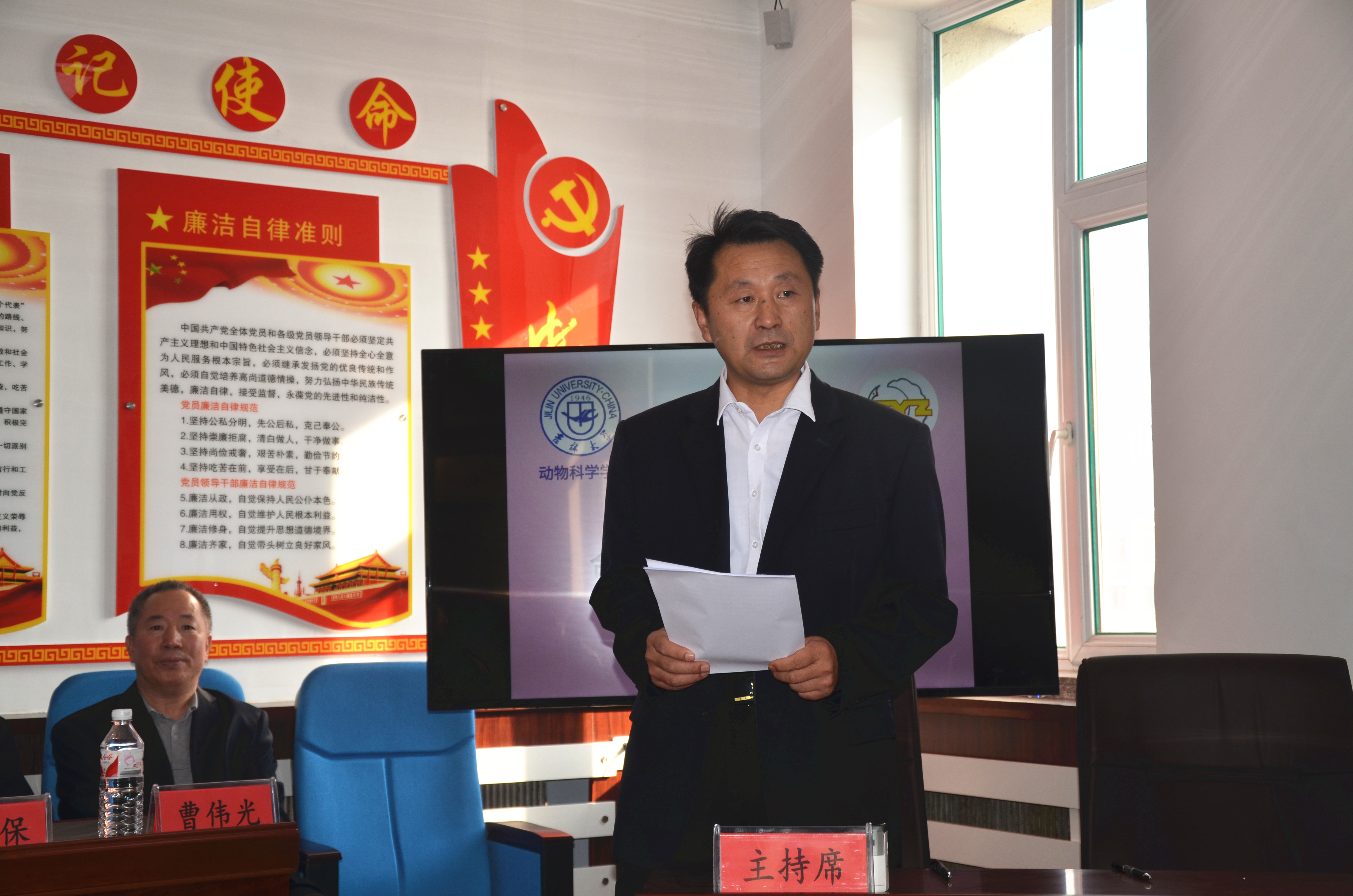仪式由通榆一中党支部副书记蔺树学同志主持,蔺书记向与会人员介绍了通榆一中和此次受助学生的基本情况。动物科学学院副院长张明军教授详细介绍了学院与通榆一中此次合作和捐资助学的目的,通榆一中2019年被评为吉林大学“优秀生源基地”,通过杨琳同学,学院与通榆一中取得了联系,希望通过资助,为一中的学生们减轻一些生活上的负担,让他们能全身心投入到学习,努力实现自己的梦想。