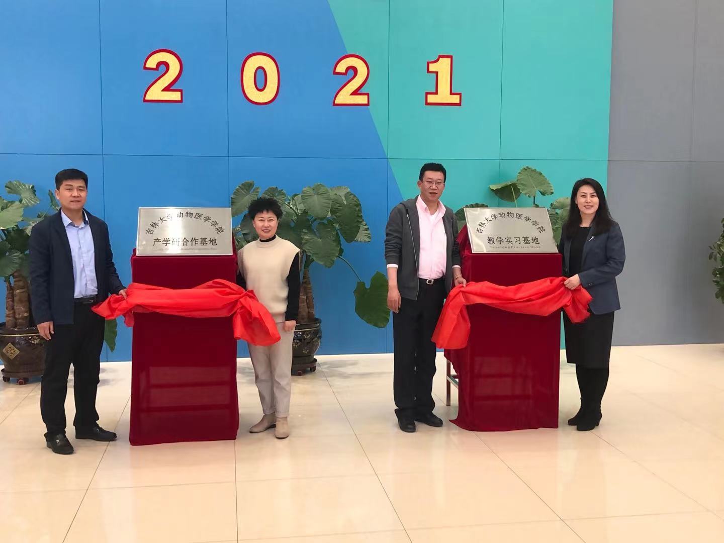 2021年4月16日,吉林大学动物医学学院产学研合作基地及教学实习基地挂牌仪式在吉林省蓝浦浩业生物科技有限公司(以下简称蓝浦浩业)隆重举行。蓝浦浩业公司董事长王启名,总经理眭春,副总经理曹原,副总经理魏明明;吉林大学韩文瑜教授、丁壮教授、动物医学院副院长李建华教授、动物医学院副院长王化磊教授,付本懂教授,冯新教授,科研办李赫主任等领导及嘉宾十余人出席了本次活动。