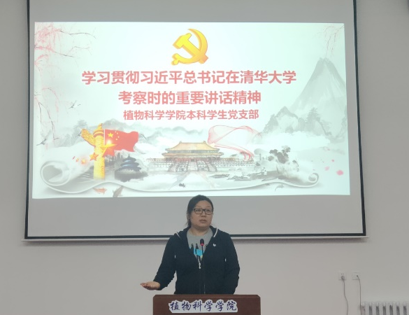 4月20日晚,植物科学学院本科学生党支部召开全体党员大会,学习贯彻习近平总书记在清华大学考察时的重要讲话精神,引导广大党员和积极分子坚定信念,自觉做中国特色社会主义的坚定信仰者和忠实实践者。会上,大家集体观看了《新闻联播》相关视频,学习了习近平总书记在清华大学考察时的重要讲话。畅谈学习感想,大家纷纷表示,总书记的重要讲话鼓舞人心、催人奋进,将牢记总书记嘱托,将个人发展与广袤的祖国大地紧密相连,坚定理想信念,练就过硬本领,敢于担当,善于作为,为我国乡村振兴汇聚起磅礴的青春力量。