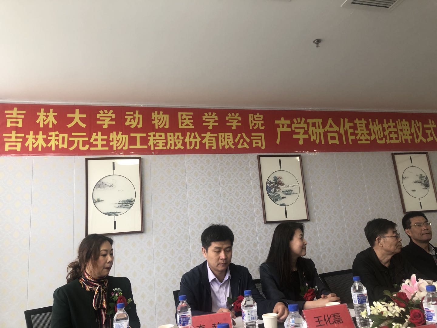 2021年5月7日,吉林大学动物医学学院产学研合作基地及教学实习基地挂牌仪式在吉林和元生物工程股份有限公司(以下简称和元生物)隆重举行。和元生物公司董事长张中洋,常务副总经理吴金、副总经理吕营、特聘技术专家冯书章、董事会秘书韩宇阳、研发总监许会会、技术与营销总监郭春红;动物医学学院院长刘明远教授、韩文瑜教授、张西臣教授、丁壮教授、主管研究生工作副院长李建华教授、主管科研工作副院长王化磊教授、冯新教授、研究生科研办公室主任李赫、研究生与科研办公室秘书马梓铭。