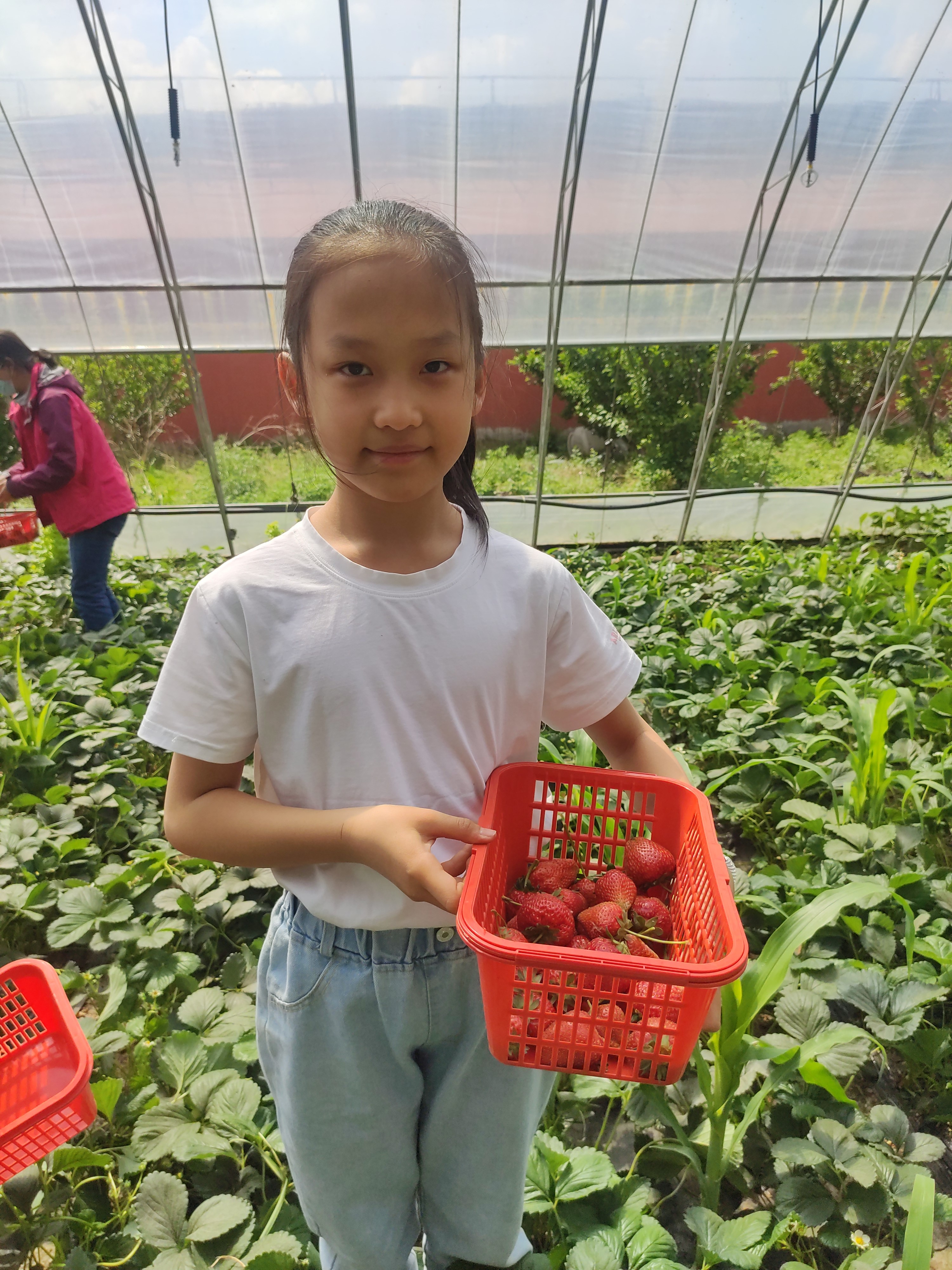 9点半左右,亲子采摘团一行进入采摘大棚。在草莓棚中,浓浓的果香扑面而来,一垄垄绿色的秧苗生机勃勃,一棵棵熟透的草莓鲜红诱人、娇艳欲滴;在水蜜桃棚中,茁壮桃树挂满累累果实。大家一边采摘一边品尝,亲身体验与大自然亲密接触的快乐、品尝与家人其乐融融的欢喜。姐妹们一边拍下美丽照片一边交流着制作草莓酱等经验,采摘园一片欢声笑语。
