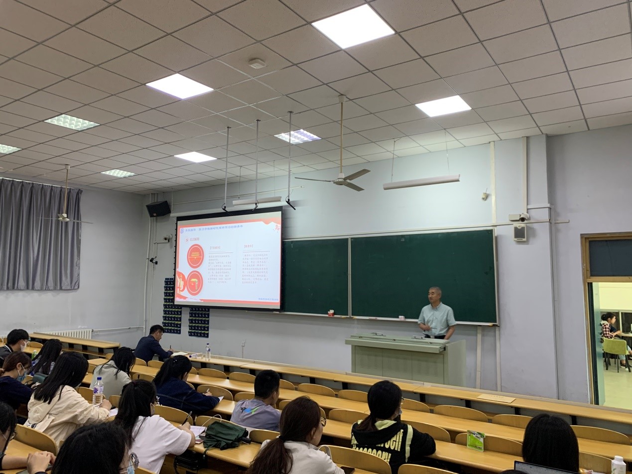 本次讲座由食品科学与工程学院党委书记董怀智主讲,讲授的主题是“不负韶华,努力争做新时代有所作为的新青年”。讲座中,董书记首先对标题中的“不负韶华”、“新青年”、“新时代”等关键词进行了解析,特别是对“新时代”的理解,把同学们带入到了我们党的百年奋斗历史之中,通过对校党委书记姜治莹在学校研究生专题党课宣讲时归纳的“革命、建设、改革、复兴”四个关键词的串讲,全面印证了我们党的伟大、光荣和正确!进一步坚定了同学们的“四个自信”、树立“四个意识”和做到“两个维护”。随后他从"‘青年强则国家强’ 新时代赋予青年的重大责任;‘打铁还需自身硬’ 新时代建设需要有本事的新青年; ‘百舸争流千帆竞’ 新时代的发展呼唤青年有所作为"三个方面进行讲授。他结合新中国七十年来的飞速发展,对新时代赋予新青年的发展责任、政治责任、民族责任对新时代的大学生重大责任进行了解析;结合新时代的国际背景和国内建设需要对新时代的大学生应具备的过硬的政治素质、新锐的科学知识、健康的身心体魄进行了点拨;结合新时代有所作为要求同学们不断解析自我内在修为、与时俱进完善自身综合素质、全身心的融入到新时代建设洪流之中!最后,董书记要求全体同学们作为无比幸运的一代,有幸见证了百年未有之大变局,更有幸成为推进中华民族振兴的一员,就要为我们伟大祖国重回世界之巅出一份力!不负韶华,努力争做新时代有所作为的新青年!