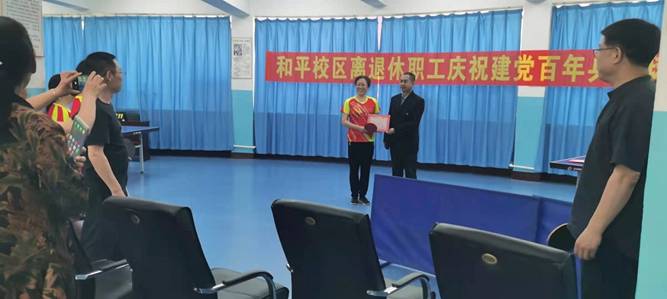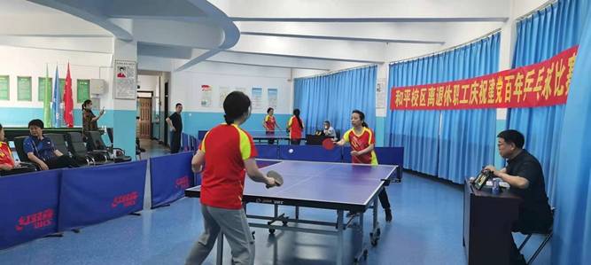 为迎接建党一百周年,丰富离退休教职工的业余文体生活。6月23日上午,和平校区离退休办在离退休活动中心举行了乒乓球比赛,本次参赛人员主要由离退休职工和办公室在职人员组成。