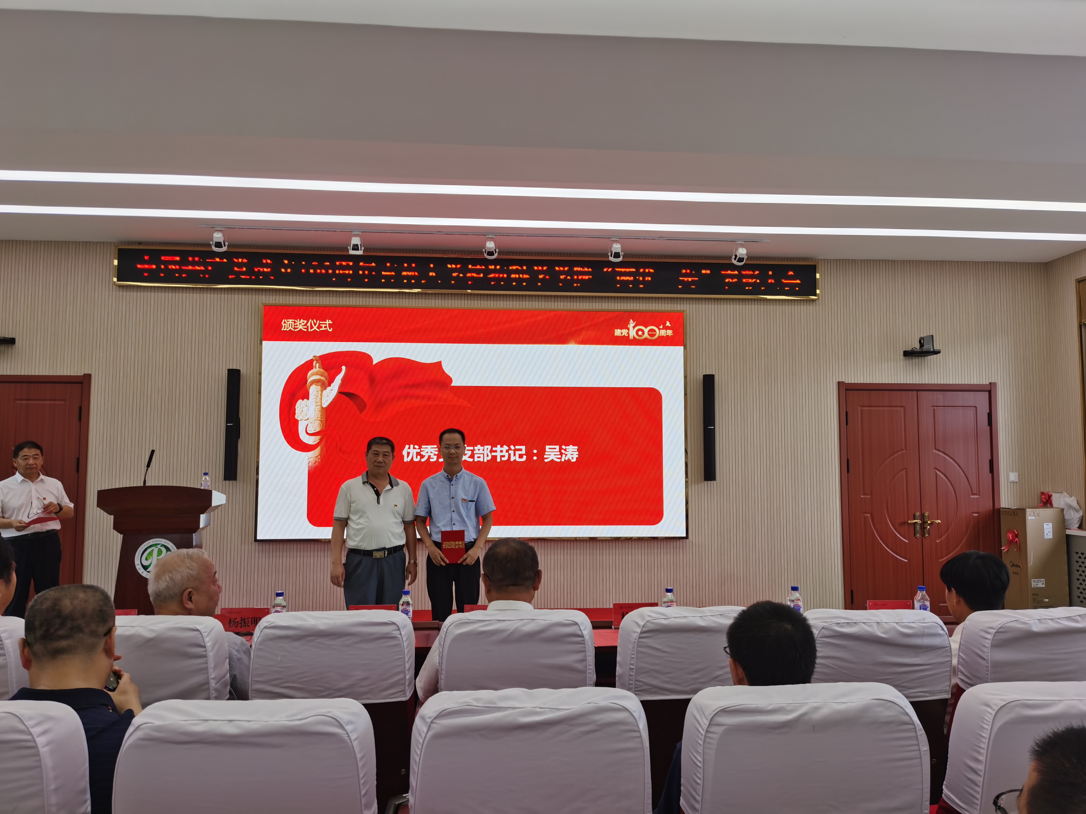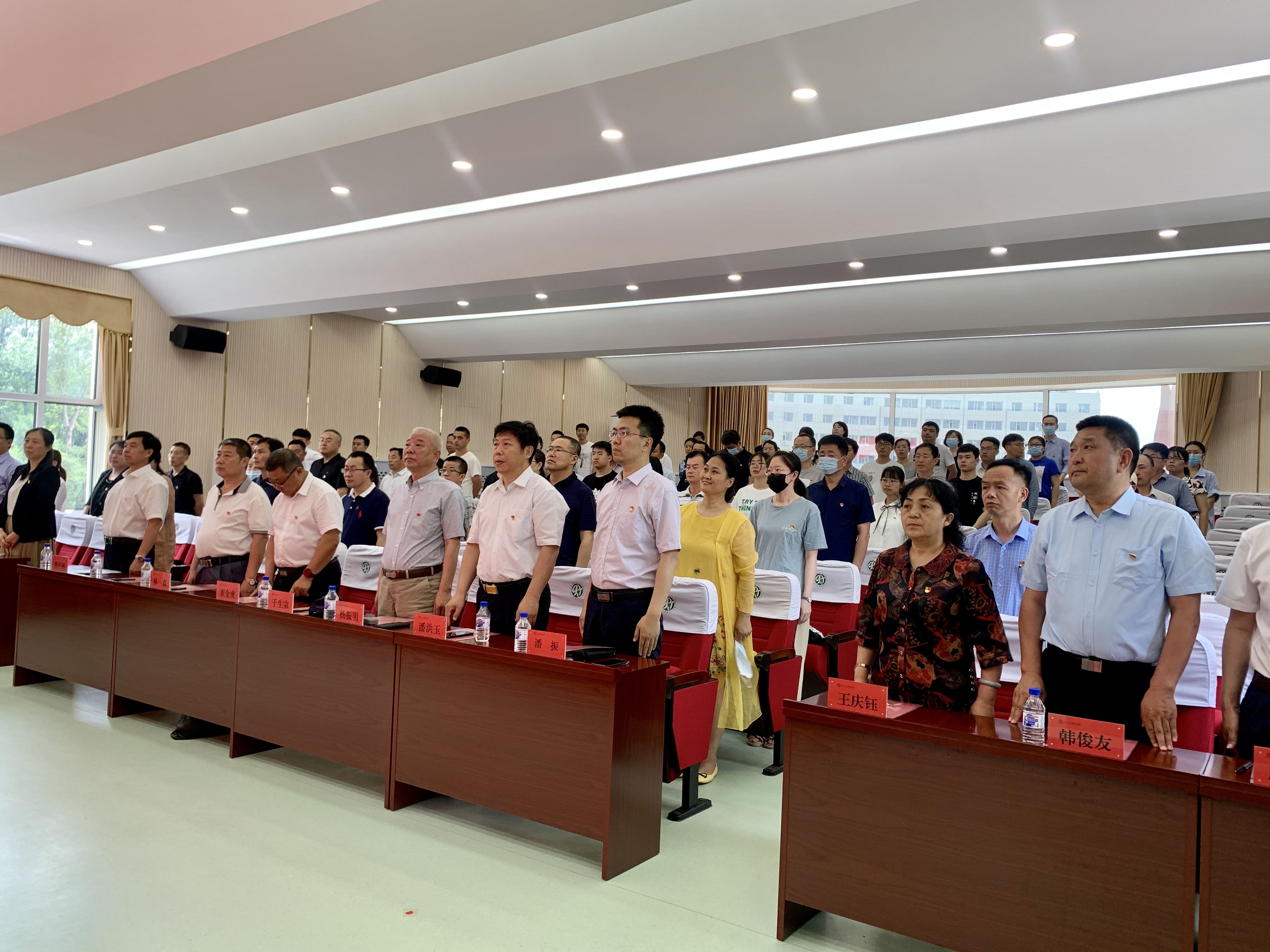 大会在雄壮的国歌声中拉开帷幕,与会人员共同观看《中国共产党百年述职报告》视频短片,从“生是为中国,死是为中国”的誓言中感受“报国之姿”;从“越激流险滩,穿惊涛骇浪”的脚步中感受“奋斗之姿”;从“为人名谋福,为民族复兴”的真情中感受“爱民之姿”。