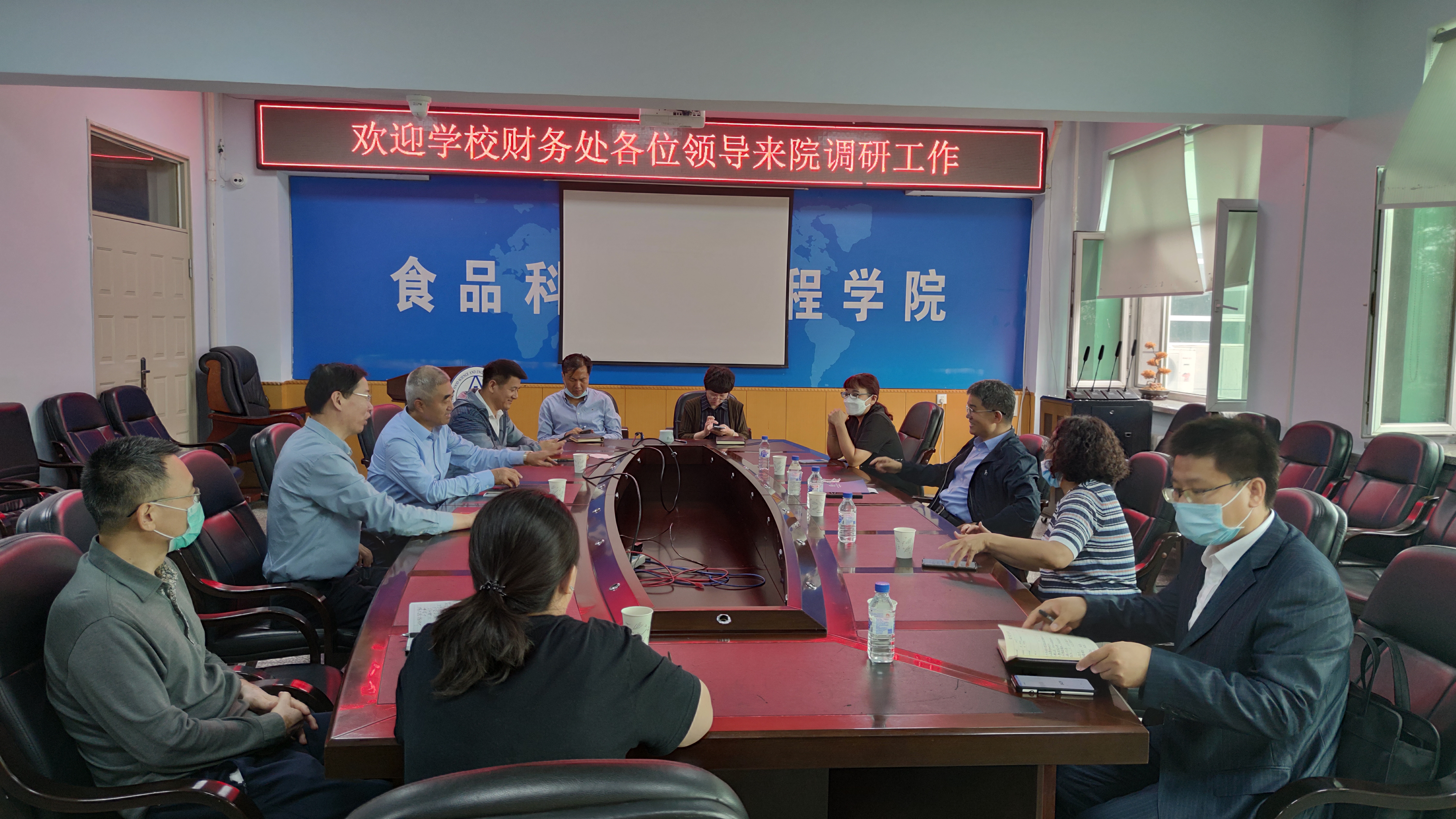 2021年9月7日下午,食品科学与工程学院在食品楼三楼会议室召开了调研工作会议。学校财务处处长李宝永、西区财务办公室主任单李岩、西区财务办公室高扬科长、西区财务办公室宫景玉副科长一行四人来到学院开展工作调研。学院全体领导班子成员、系主任参加了会议。