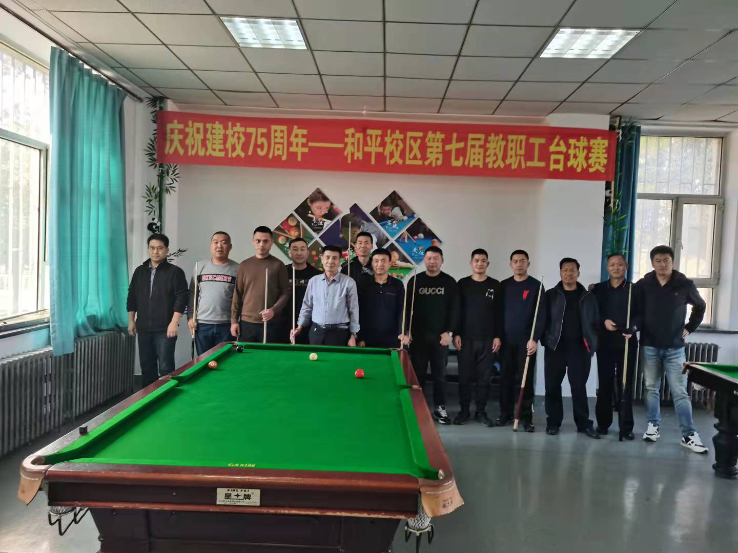 为热烈庆祝建校75周年,丰富广大教职工业余文化生活,促进单位的沟通与交流,积极地营造良好的校园文化氛围,增强教职工的凝聚力和向心力,增强疫情防控期间教职工的身体素质,提升全民健身的意义。2021年10月27日至28日,西区事务办公室联合和平校区台球协会举办了“庆祝建校75周年——和平校区第七届”教职工台球比赛,本次比赛采用乔氏比赛规则,经过两个半天的激烈角逐,植物科学学院姜冲博获得冠军、植物科学学院聂海涛获得亚军、离退办李胜杰、西区事务办公室韩伟并列季军。