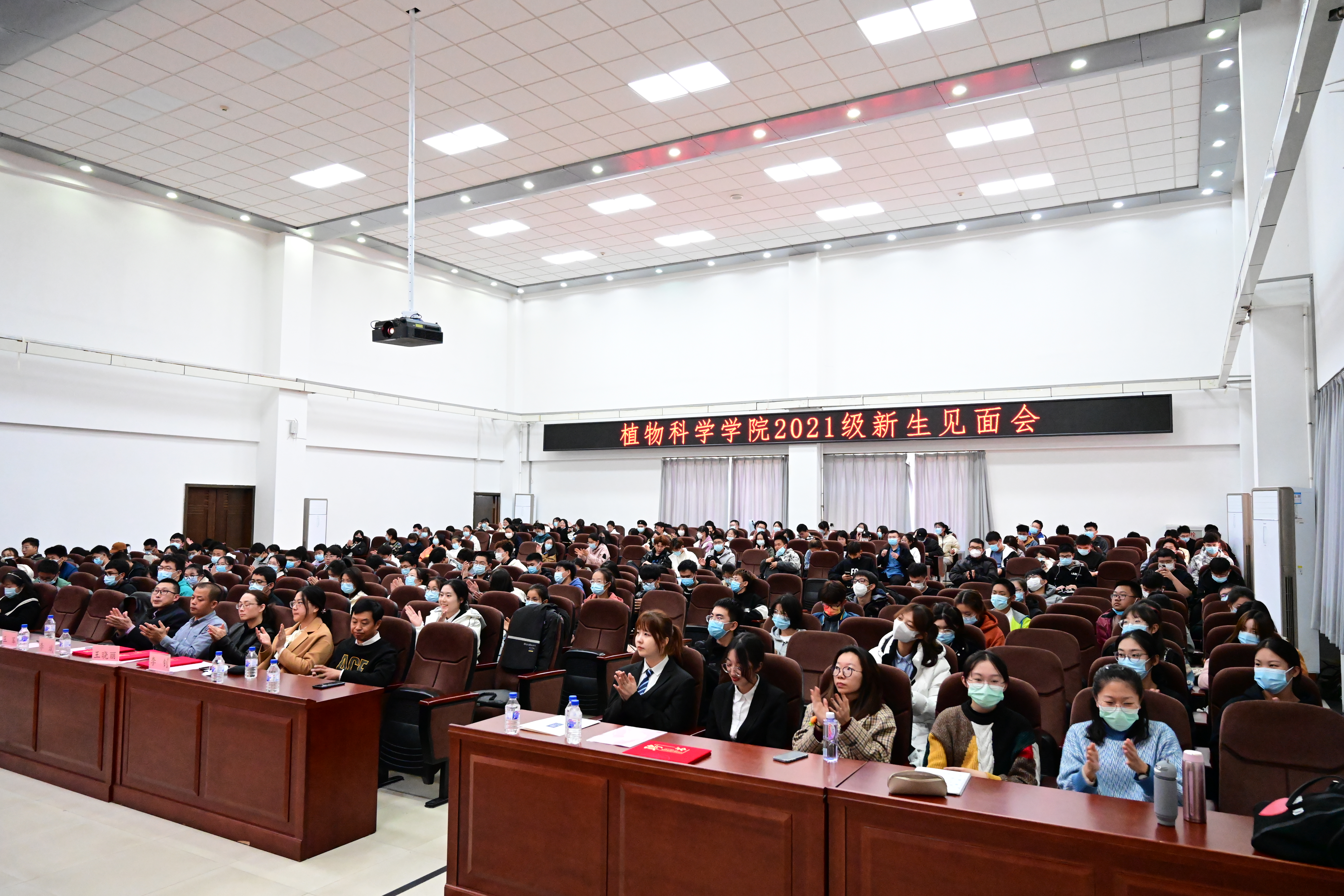 10月27日,植物科学学院2021级新生见面会暨新生开学第一课于数学楼报告厅举行。植物科学学院党委书记于生宗、院长都兴林、各行政办公室主任、2021级新生班主任、2021级本科生辅导员高梦玉及全体21级本科新生参加本次大会。会议由学院党委副书记兼副院长潘振主持。