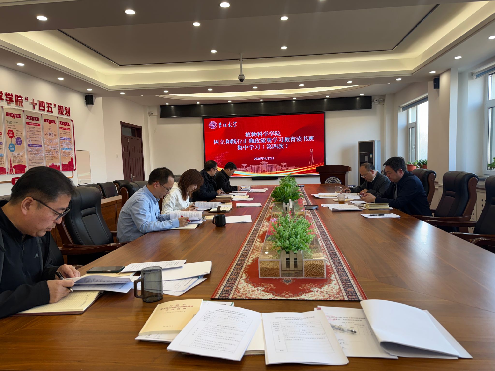 4月2日,植物科学学院党委组织树立和践行正确政绩观学习教育读书班第四次集中学习,学院领导班子全体成员参加学习,学习由学院党委书记田进主持。