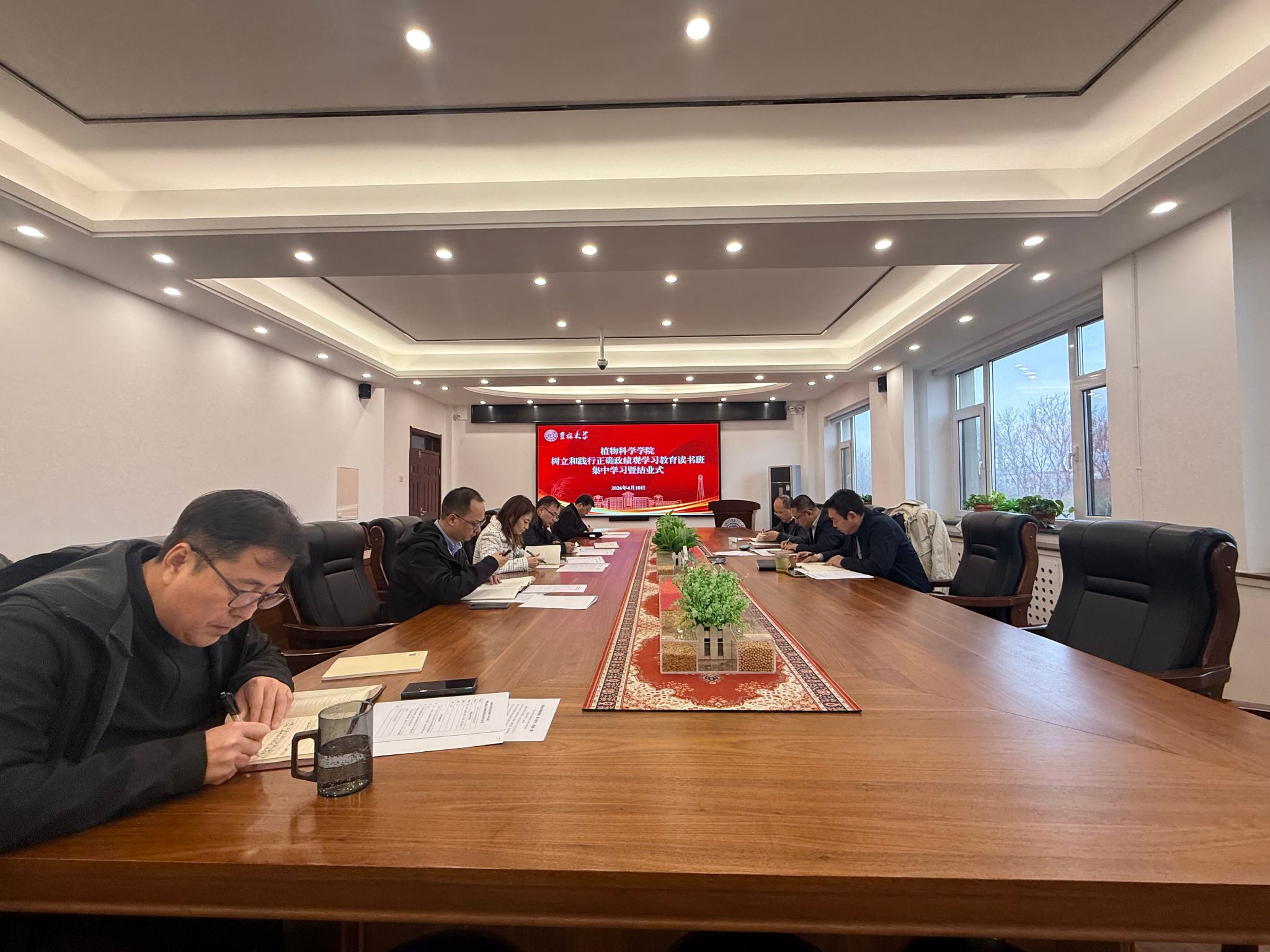 本次读书班自3月19日开班以来,紧扣主题,科学制定学习计划,创新学习形式,扎实完成各项学习任务,实现学习内容、参与人员、要求落实三个全覆盖。读书班系统设置正确政绩观重要论述、“十五五”规划与高等教育、教育与农业强国建设等五个学习专题,统筹集中领学、个人自学、专题研讨、实地研学等多种形式,班子成员带头领学相关重要论述与会议精神,对照“五重五轻”政绩观偏差深查细照,围绕新农科建设、作物学学科攀升、服务吉林农业发展等主题深入研讨。