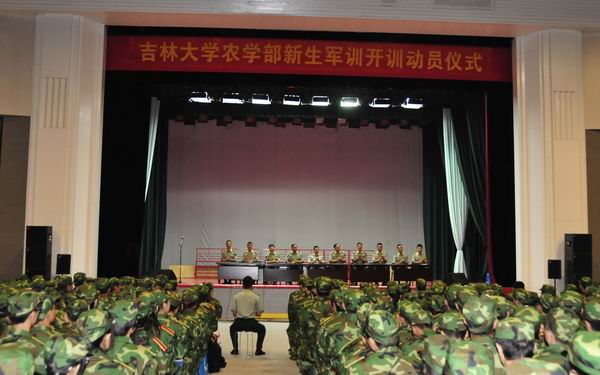 大会在奏唱《国歌》中开始。体育教研室付雅军老师宣布了军训组织机构,郭显彬老师对大家提出了军训要求和应注意的问题,学生、教官代表分别发言,保证积极认真的完成训练任务,不辜负学校学部的期望,盖涛老师作了动员讲话。最后,在奏唱《吉林大学校歌》中军训动员大会结束。