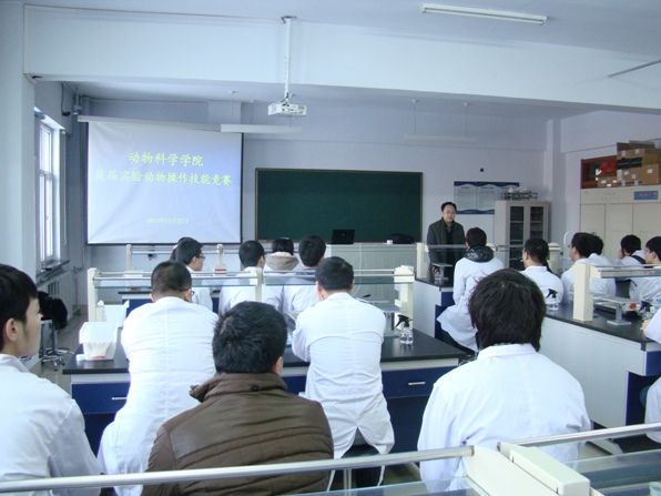 为提高学生的专业实践能力,激发专业课程学习的积极性,动物科学学院于2013年11月22日在实验教学中心412教室举办了首届实验动物操作技能竞赛。院长张嘉保教授、副院长任文陟教授、副书记曹伟光副研究员、实验动物学系主任刘殿峰教授以及相关指导教师作为嘉宾和评委应邀到场。