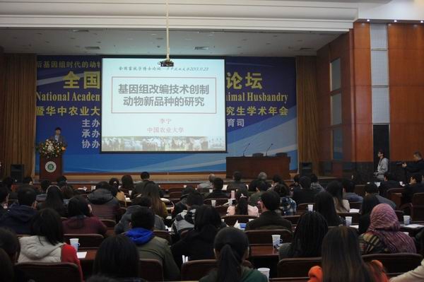 李宁院士,陈焕春院士及来自全国畜牧学相关高校和科研院所的畜牧学相关领域的国内外知名专家、学者和优秀企业家与会点评,并就“后基因组时代的动物生命科学”前沿问题做特邀报告,会议举行博士生交流报告30场,会议墙报展示60个,由8名博士生担任论坛主持人,8名青年教师担任点评专家。30名畜牧学相关领域博士生就学科前沿问题做了报告,并展开讨论。