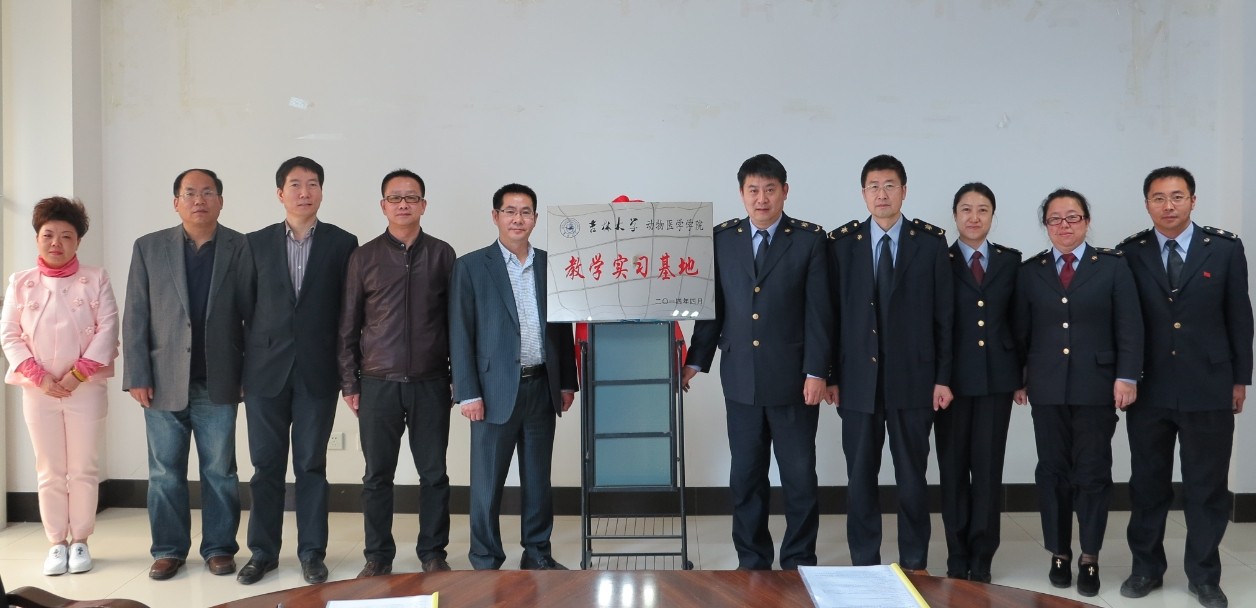 为了给学生搭建更多的优质实践平台,培养高素质的应用型兽医人才。2014年4月17日上午,“吉林大学动物医学学院吉林出入境检验检疫局教学实践基地”揭牌仪式在吉林出入境检验检疫局三楼会议室隆重举行。动物医学学院院长赖良学教授,副院长柳巨雄教授、雷连成教授、王新平教授及办公室人员;吉林出入境检验检疫局检验检疫技术中心牟峻主任、各实验室、研究室主任,共20多人参加了本次揭牌仪式。