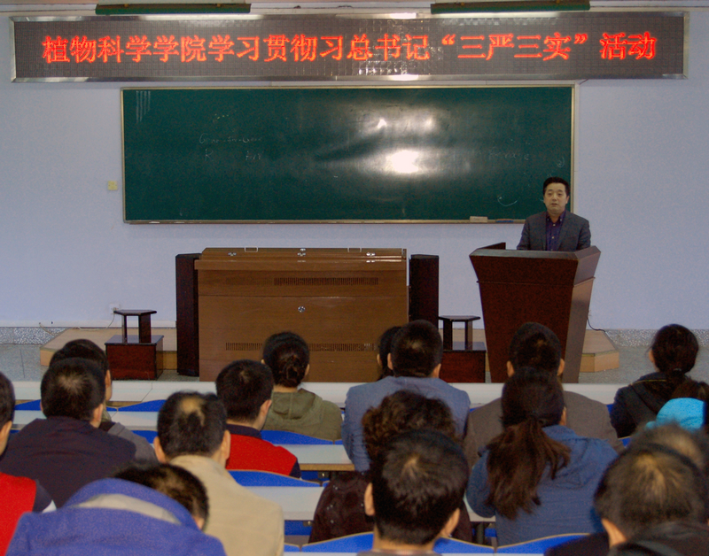 5月14日下午13:30,植物科学学院在二楼会议室组织全体教职工传达学习了习近平总书记“三严三实”的讲话等文件精神。会议由王彦清书记主持。