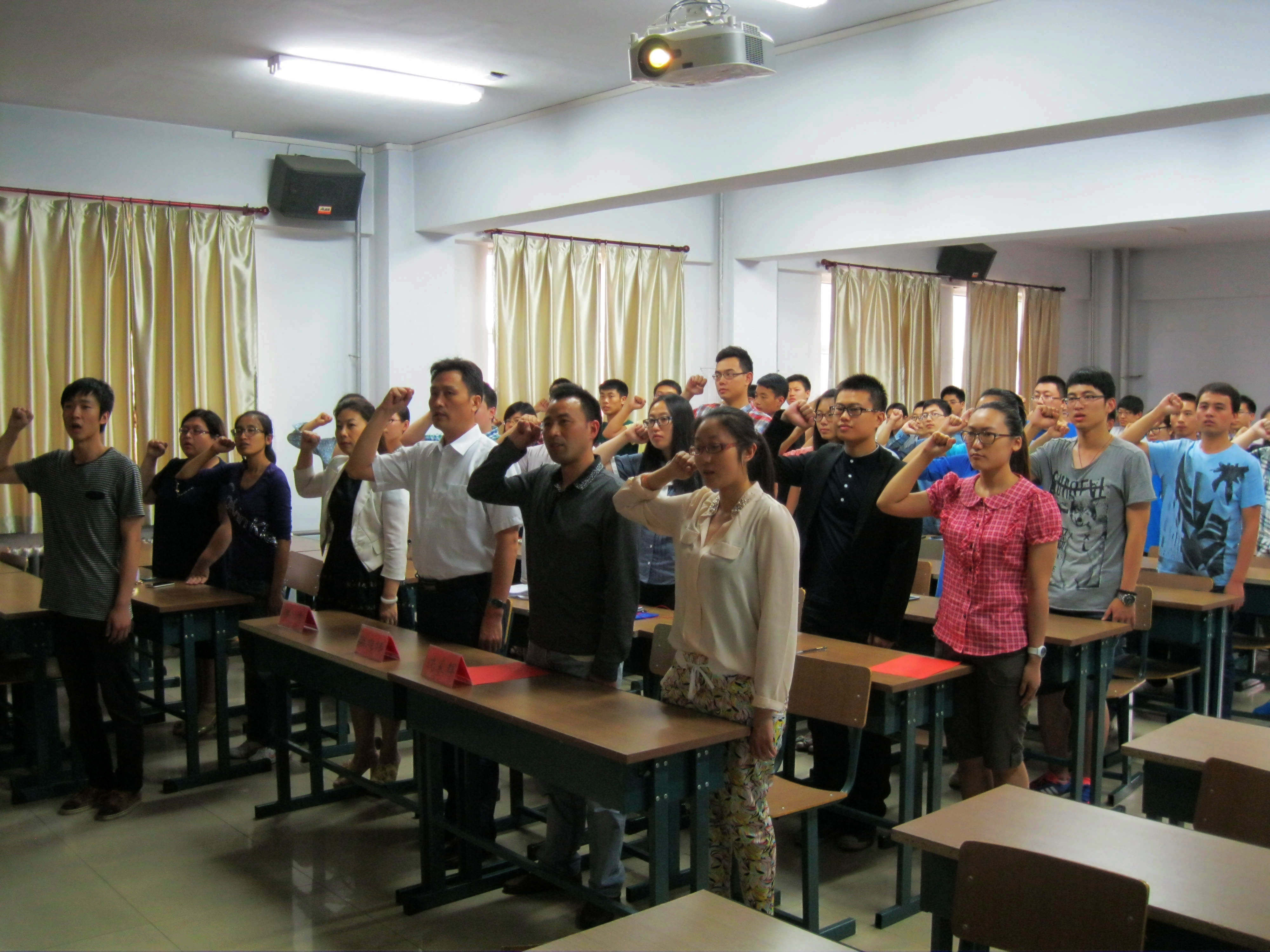 2014年6月27日,动物医学学院于动物医院310教室隆重举行了2014年新党员入党仪式暨老党员重温誓词仪式。出席本次宣誓仪式的领导有:动物医学学院党委栾志伟副书记、饶家辉副书记,动物医学学院本科生党支部书记、研究生党支部书记以及辅导员谭瑶、周靓。学院老党员和14名新预备党员出席了本次宣誓仪式。