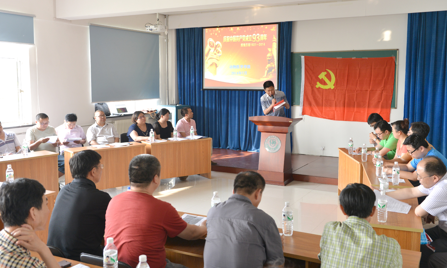 7月1日下午,动物医学学院党委组织纪念建党93周年庆祝活动,活动由党委副书记饶家辉主持,整个纪念活动分为三个部分:老党员重温入党誓词;党史知识竞赛和唱红歌演唱会。