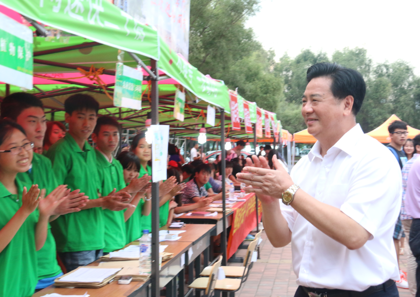 下午3:30分左右,校长李元元院士及学校党政相关职能部门领导亲临迎新现场检查工作。检查过程中,李校长亲切的与各学院的教职工、学生志愿者握手留念,并感谢大家辛勤的劳动和对迎新工作的付出,在聊到学科专业的问题时,更是勉励同学们要牢固掌握专业知识,成就高精专的学问架构。受校区学生组织邀请,李校长一行还走访了现场纳新的校区学生会、学生社团联合会、大学生艺术团的骨干成员们,期望他们承担起活跃校园文化氛围的重任,为新生树好榜样,为校区增光添彩。随后,李校长看望了刚刚报道入学的新生及家长并与他们亲切交谈,他说:“感谢你们将孩子送到吉林大学来读书,你们放心,吉林大学一定尽心会培养好这些的孩子,成为国家的栋梁之才。”