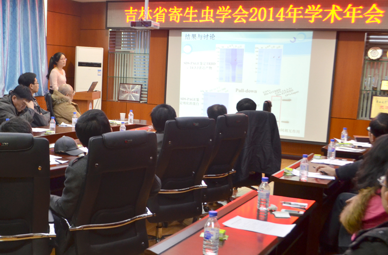 学术年会由来自吉林大学、延边大学、吉林农业大学、军事兽医研究所和吉林省疾病预防控制中心的6名寄生虫病工作者做了学术报告。常务理事会议主要总结了学会2014年工作和讨论2015年工作要点,评选了2014年学术年会优秀报告并颁奖。