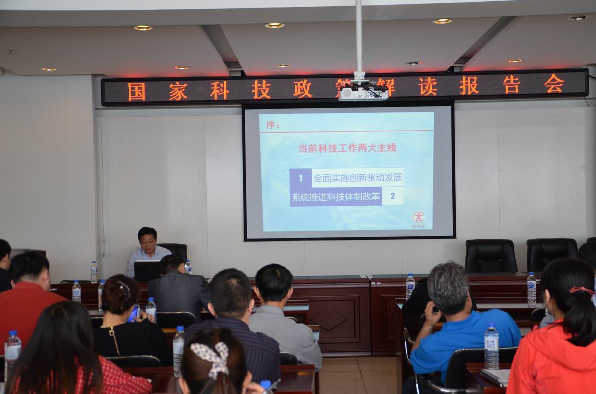 张晓冰副处长主要从国家科技政策和体制改革的历史进程、目标内容、重点方面、推动方式、高校如何适应新形势和加快实施创新驱动具体措施等六个方面,结合自身多年的工作经验,通过实例和举证,进行了详细解读。重点传达学习了《关于改进加强中央财政科研项目和资金管理的若干意见》(国发[2014]11号)、《关于深化中央财政科技计划(专项、基金等)管理改革方案的通知》(国发[2014]64号)、《中共中央、国务院关于深化体制机制改革加快实施创新驱动发展战略的若干意见》等3个文件精神。最后与科技工作者就关心的部分问题进行了交流和讨论。