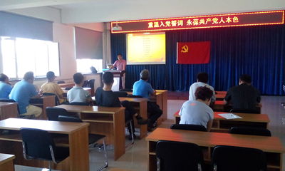 6月30日上午,农业实验基地召开了“重温入党誓词,永葆共产党人本色”主题会议。会议由党总支书记董怀智主持,全体党员参加了会议。
