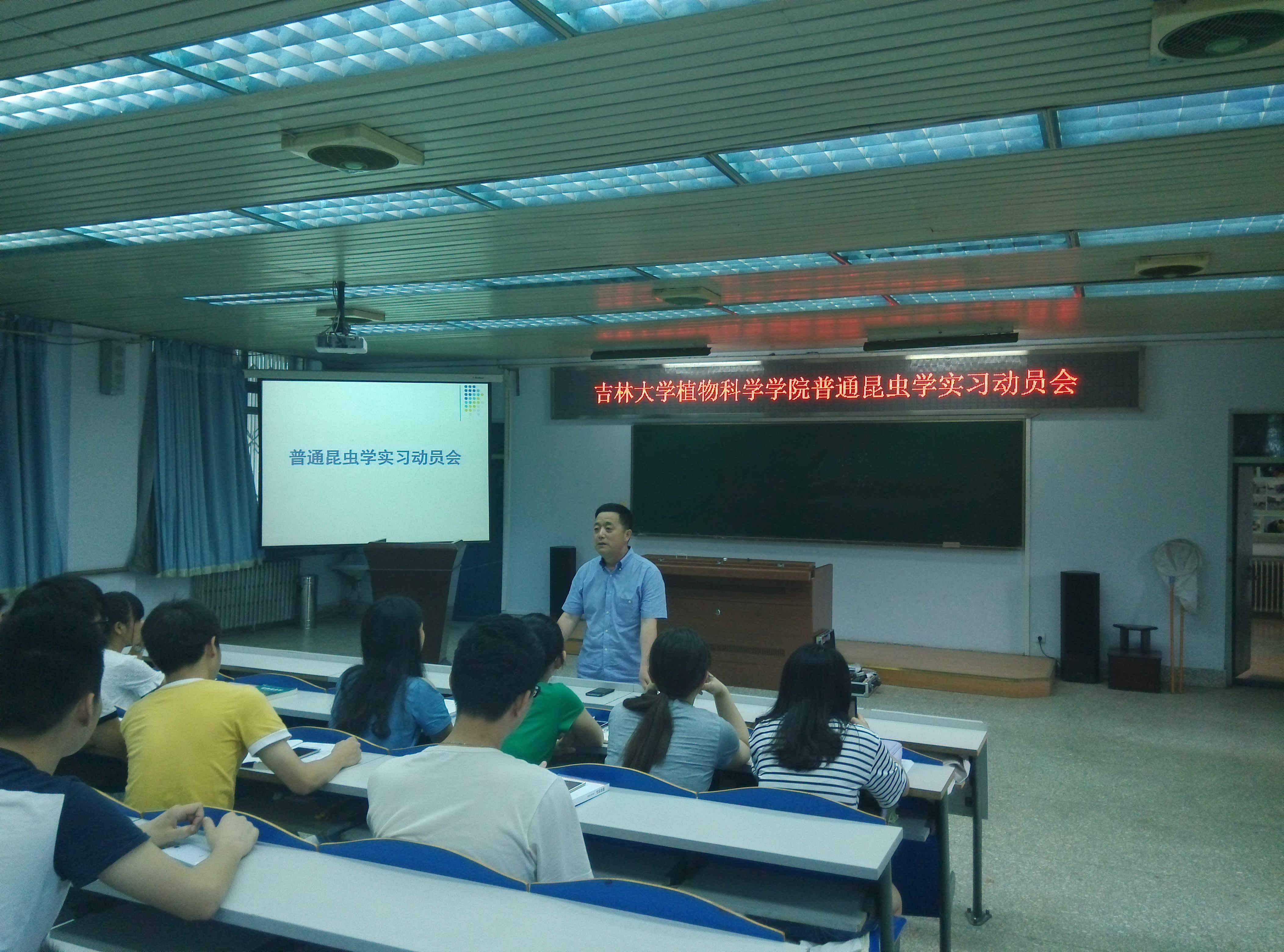 植物科学学院植物保护专业《普通昆虫学》实习课程暨长白山地区昆虫资源暑期调查社会实践活动将于2015年7月13日-17日在长白山林区进行。7月11日9时,植物科学学院在学院二楼阶梯教室召开了实习与实践动员大会。出席动员会的有学院党委王彦清书记,植物保护系王军副教授,2013级辅导员王庆老师。会议由王军副教授主持。
