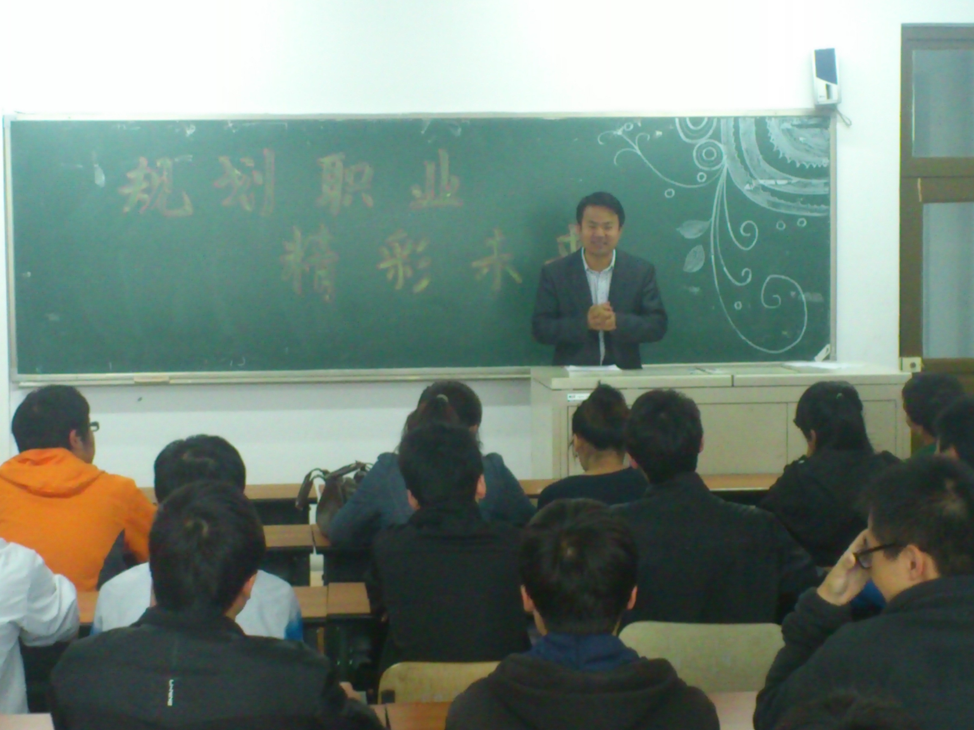 首先,由杨正涛副教授进行动员讲话。杨老师从个人成长经历引出职业规划对大学生的关键性,他将关键总结成“选择”“方向”和“定位”这三个词。接下来他深刻剖析了大学生进行职业规划的目的和重要意义。他强调:大学生职业生涯规划可以使同学们在清晰自己职业目标的情况下,围绕实现其所需要的各种知识、能力和素质,科学规划和高效利用好学习时光,培养能力,进而为未来的职业发展打下良好的基础。同时,杨老师还教育全班同学要在今后的学习、工作、生活中规划好自己的人生,尤其要注意细节的培养,积极面对一切挑战,努力奔向自己的人生目标。