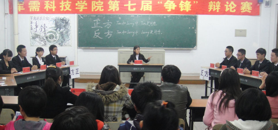 激情澎湃辩王者风范,激昂陈词论谁与争锋。2013年10月12日晚6:30分,科讲602灯火通明,场面热烈,军需科技学院第七届“争锋”辩论赛复赛圆满落幕。出席本场比赛的评委是来自学生会的骨干。经过复赛第一轮的激烈对决,四支队伍脱颖而出,他们披荆斩棘,一路向前。