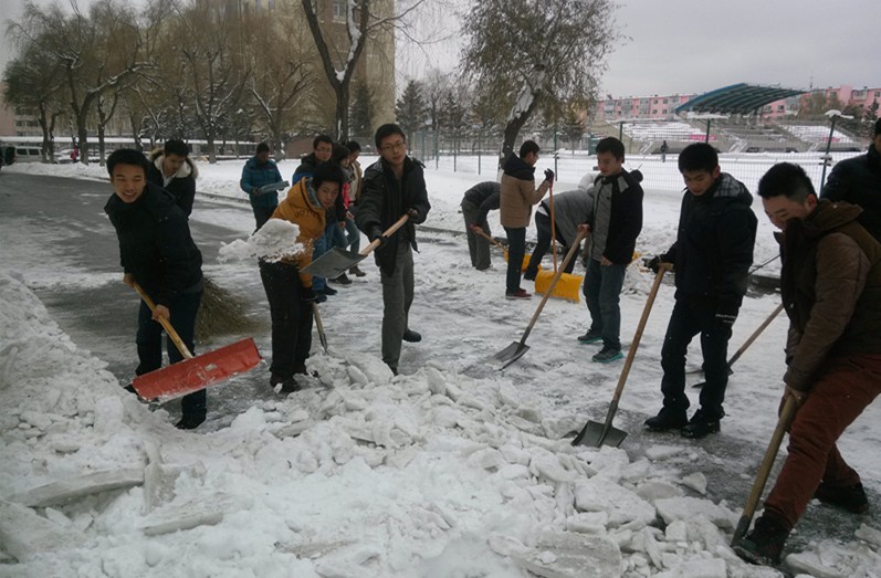 整整两天两夜的大雪过后,那绵绵的白雪装饰着世界,琼枝玉叶,粉装玉砌,皓然一色。和平校区精业路上已经盖上了一条条长长的白地毯,纯洁而晶莹,冬夏常青的松树上,堆满了蓬松松、沉甸甸的雪球,宿舍的屋顶上,也被盖上了一床厚厚的白棉被,屋檐上挂满了冰凌,像一道玲珑的花边。雪为同学们带来了欢乐。操场上,道路旁,随处可见三五成群的同学们堆着雪人,拍着雪景,不知是谁率先扔出了一个雪球,一场规模的浩大的雪仗一触即发。