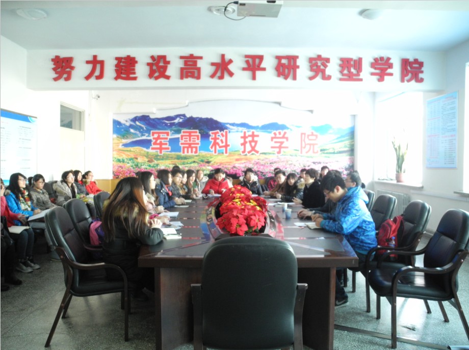 为迎接吉林大学共青团十七次代表大会的胜利召开,全面营造蓬勃向上、催人奋进的校园气氛,通过宣传‘团代会’和‘学代会’有效提升我院共青团“组织青年、引导青年、服务青年、维护青年合法权益”整体工作水平,军需科技学院于2013年11月28日中午12点10分在食品楼三楼会议室召开团委扩大会议。吉林大学农学部团委书记邵俊涛,军需科技学院党委副书记梅士伟出席了本次会议,学院学生会骨干成员及大一、大二、大三各班团支书参加会议。会议由学工办主任兼团委书记王丹主持。
