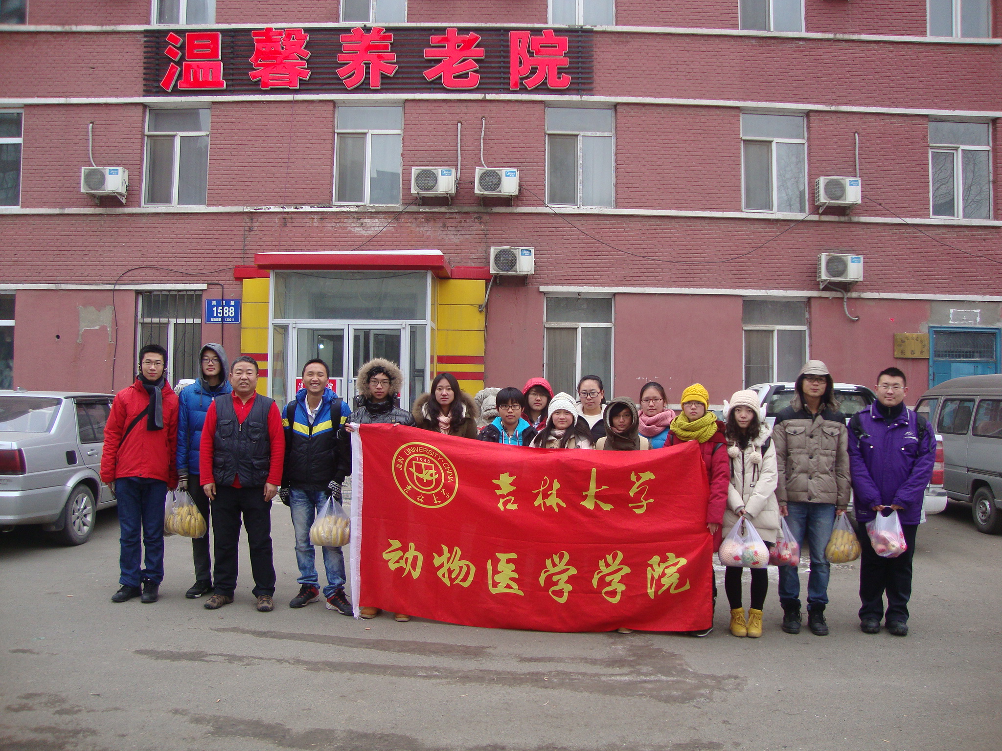 为激励大学生更好地完成大学学业,促进大学生德智体美全面发展,吉林大学鼓励大学生们在校期间多进行志愿者活动,以丰富大学生活,达到各方面均衡发展的目标。为响应上级领导号召,不断自我发展,弘扬中华民族敬老爱老的传统美德,2013年12月8日,吉林大学动物医学学院2013级动物医学(公共卫生)专业组织了十六名大学生志愿者前往长春市温馨敬老院进行“尊老,爱老,关怀老人”的志愿者活动。