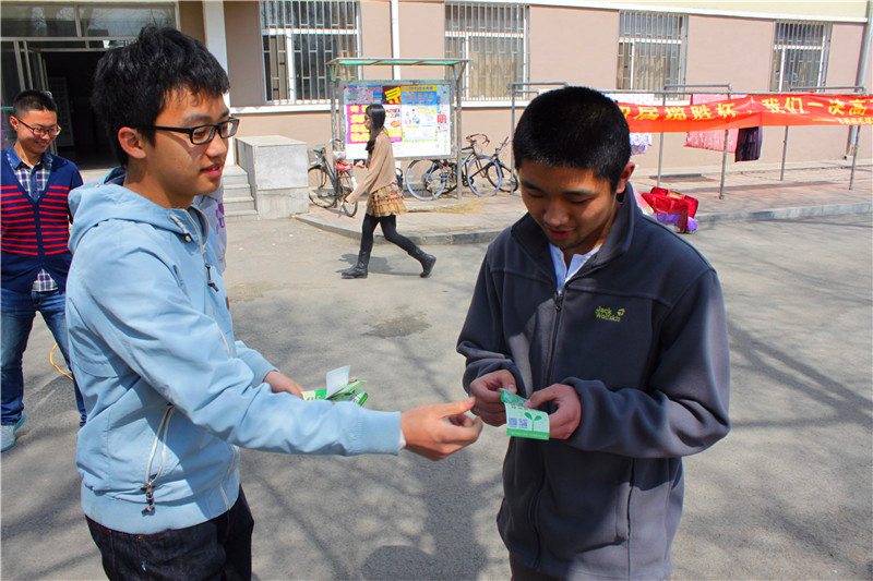 春暖花开,绿意盎然,“绿植领养”环保活动在五号公寓门前拉开帷幕。社联工作人员提前在路的两旁挂起了条幅,贴好了宣传海报。活动开始40分钟内几百份份绿植便被认领一空,发放的每份植物种子都附带一份种植说明,一个半月以后将会抽取部分种植的花草进行评选、展出、分享种植故事,并从中评选出和平校区的“绿色环保大使”。拿到种子的同学们兴奋不已,并讨论回宿舍后就在小花盆里种植,日日观察它的成长且记录下来,将低碳生活进行到底,并鼓励身边的同学积极加入到绿色植物种植中来。在同学们的期待与兴奋中,本次绿植领养活动圆满落幕。
