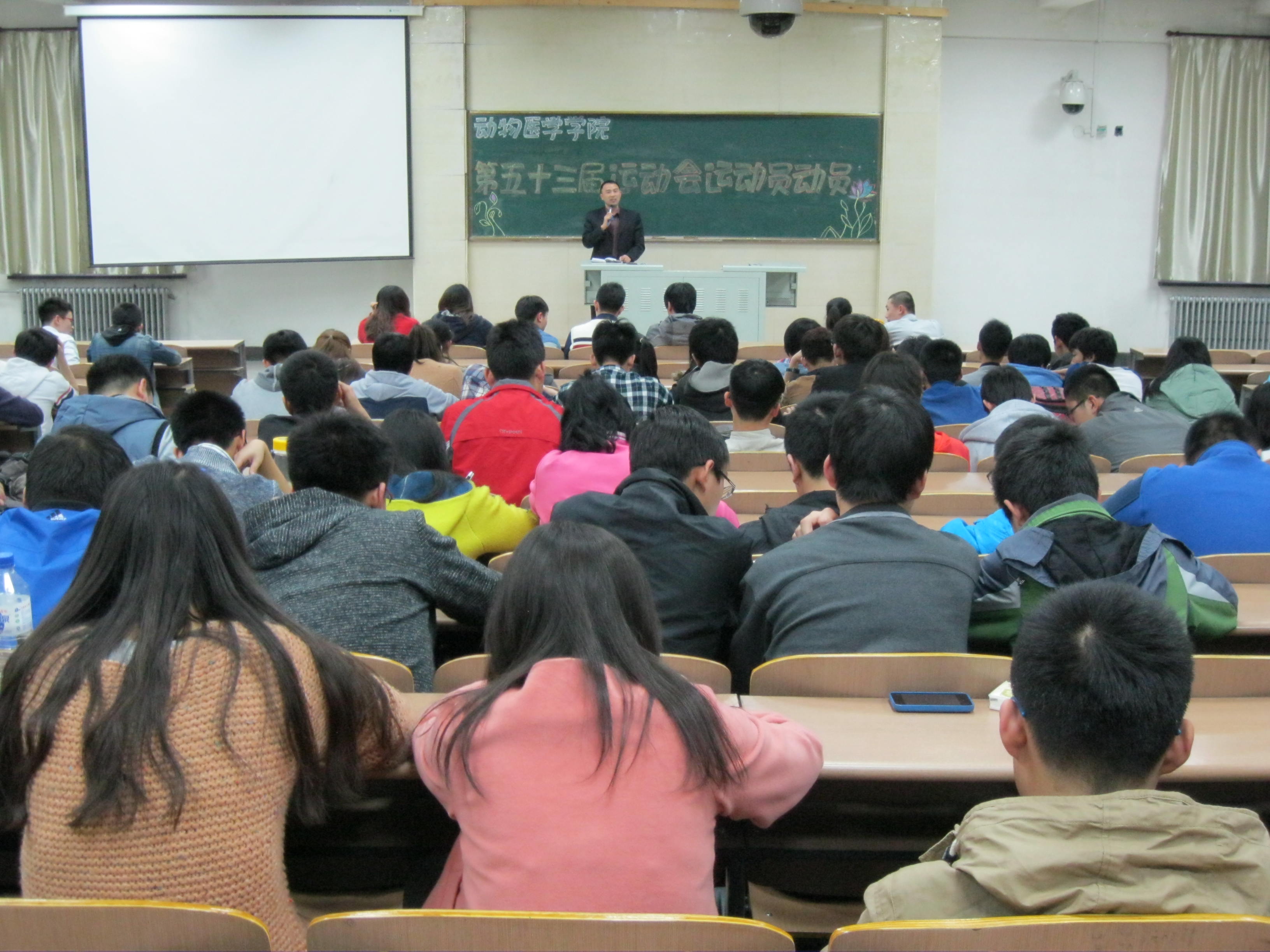 为迎接吉林大学第五十三届运动会,动物医学学院领导和老师高度重视、大力支持,全体师生积极备战。为鼓舞士气,增强同学们敢于向上、奋力拼搏的精神,动物医学学院特于2014年4月11日在动物医院602阶梯教室召开了运动员动员大会。动物医学学院书记饶家辉,团学办主任董兵、辅导员周靓出席了本次大会。动物医学学院全体运动员和学生会有关成员到场参加了此次动员大会。