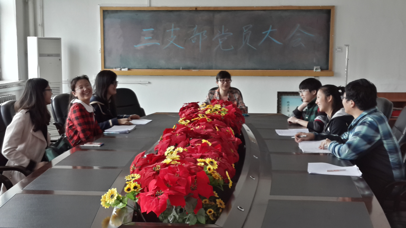 会上,金鑫老师首先强调要把“三会一课”工作落到实处。通过定期召开支部党员大会、支部委员会和党小组会议及党课学习健全本支部的组织生活,严格党员管理,加强党员教育。其次,金鑫老师询问了支部电子期刊和读书经验交流会的具体筹划组织情况。在相关项目负责人做了详细介绍后,党员和预备党员畅谈自身感法,积极建言献策,使得这两项活动更具丰富性和可操作性。最后,金鑫老师指出每位党员在学好本专业课程的同时,一定要关注国家时政大事,关注党的重要会议,认真学习会议精神并付诸实践。通过实践锻炼不断增强党性观念和实际工作能力,从而在各项工作中自觉地发挥先锋模范作用。