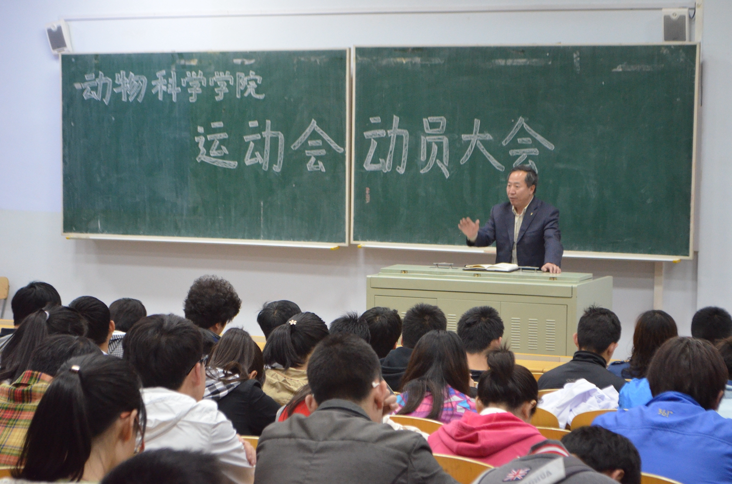 2014年4月17日中午12:20,动物科学学院在科学讲堂100教室成功召开了吉林大学第53届田径运动会的动员大会。学院党委副书记曹伟光、学生工作办公室主任于丹丹、辅导员肖建荣、全体运动员、文艺表演人员及运动会工作人员及全院各班级负责人出席本次大会。学生工作办公室主任于丹丹主持此次大会。