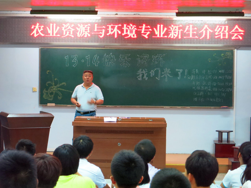 进入新的环境,新生们难免有些许困惑, 2014年8月31日,植物科学学院农业资源与环境专业在农学楼多功能报告厅为新生们举行了一场新生介绍会。系主任闫飞、辅导员邓松、班主任张玉斌莅临介绍会。