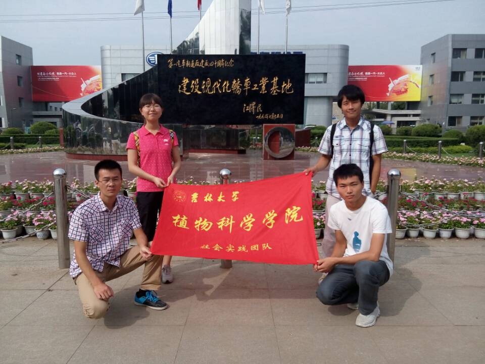 2014年8月10日至20日,怀着对长春的热爱和对社会的感恩之心,植物科学学院2012级生物技术(植物)专业的宋勇君与同学一行4人组成X探索小队在农安县陈家店村,一汽集团以及绿园区开展了暑期社会实践活动,活动在各方的共同努力之下取得了很大的成功,队伍中的每一位成员都获益匪浅。