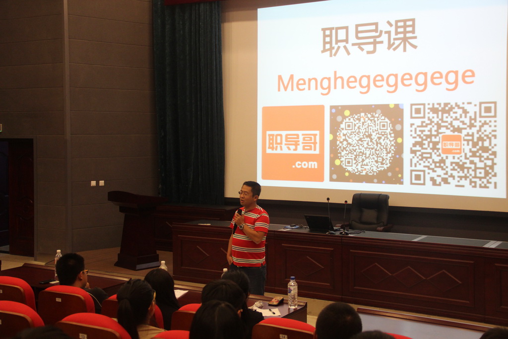 职导哥孟鹤本科毕业于吉林大学南岭校区,他以理工科出身特有的逻辑思维加以流利的口语表达,现场带领全体听众进入无领导小组讨论,让大家亲身体会到如何才能正确运用讨论小组中的人力资源和参与人员的共有时间,理解怎样的合作才可以使小组效率积极性提高,从而实现自我的价值,为自己日后个人简历填上浓墨重彩的一笔。此外,职导哥还详细讲解了如何做自我介绍。宣讲会上,嘉宾多次与学生互动,同学们提问积极,职导哥回答巧妙。