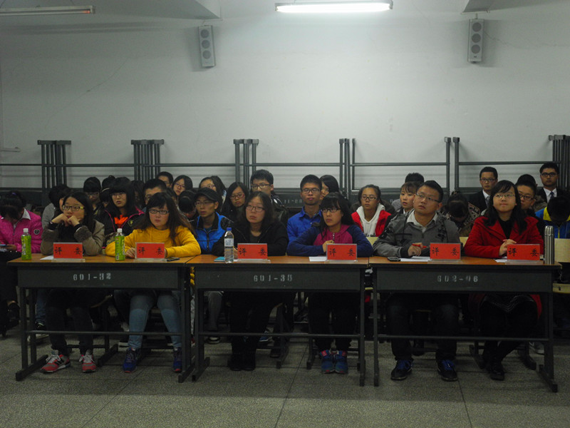 为了系统深入的学习社会主义核心价值观,提高大学生思辨能力,10月14日晚6点,军需科技学院在科讲601举办了“弘扬核心价值观”主题辩论赛。军需科技学院学生会副主席徐玥、体育部部长赵艺、体育部副部长龚雪以及辩论队骨干成员担任评委,学院2014级学生辩手参加了本次辩论赛。